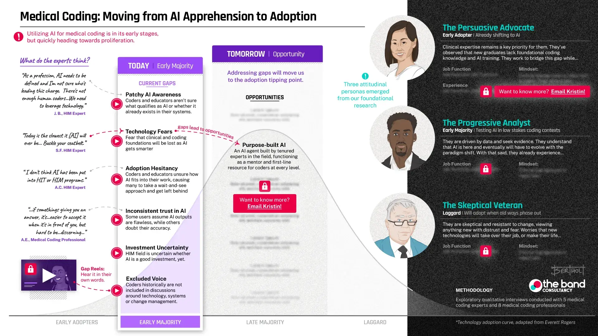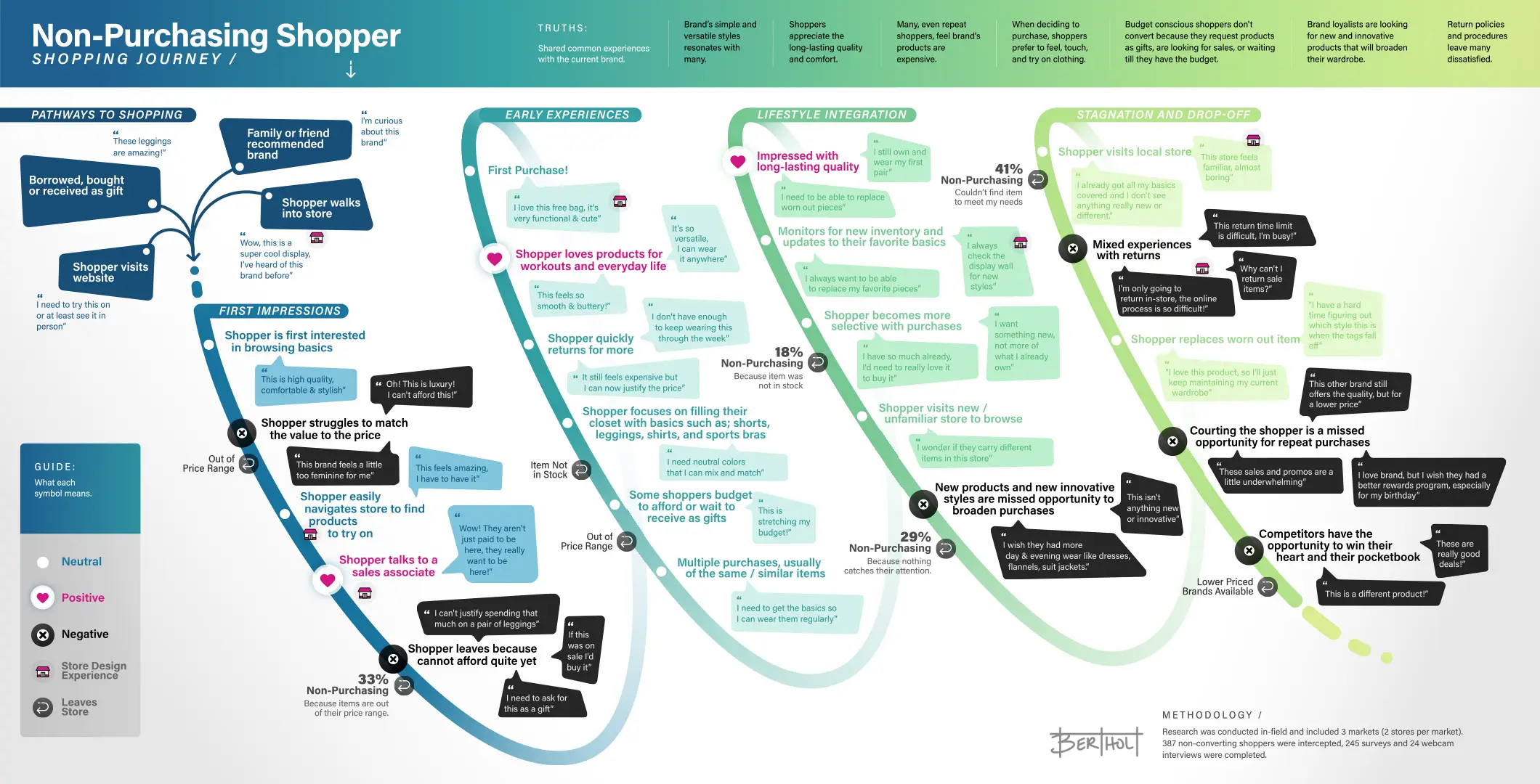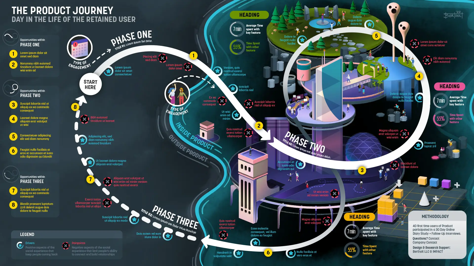 Most customer journeys are a stale cascade of columns and copy—boring and inaccurate. UX is not linear. Ethnography deserves better. I craft engaging visuals that turn research into action, socializing insights among stakeholders and driving change for years to come. Through metaphor and illustration, I make your findings impossible to ignore.