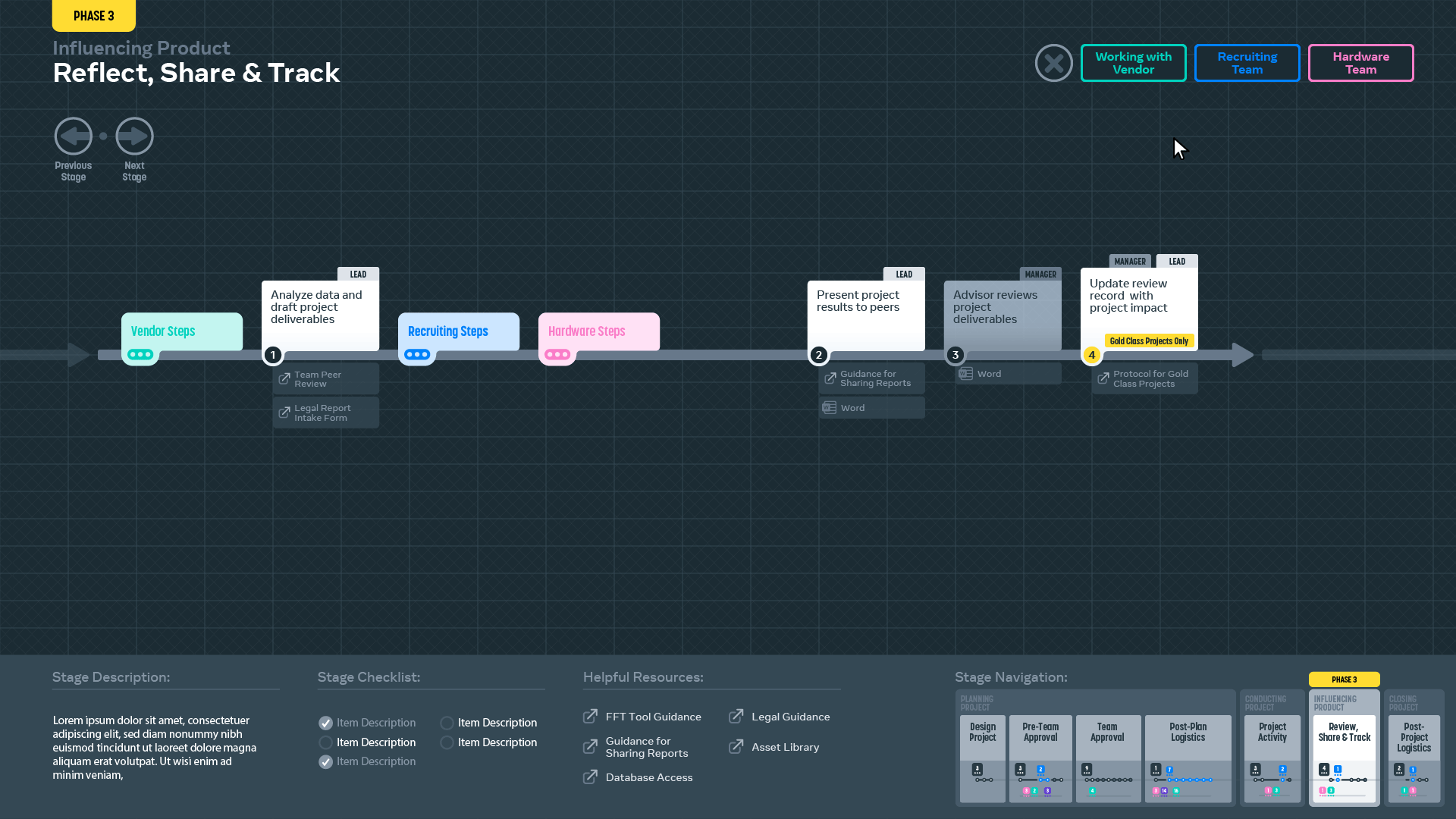 Some teams need more than static visuals—they need interactive tools that align employees around processes and resources. I build custom clickable PDFs that help teams understand complex flows, drive company-wide adoption, and shorten onboarding timelines. Think: “How do I actually run a project at this company?”—answered.