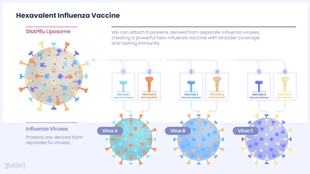 So, if we can translate bullet points into pictures, we tap into this visual memory. Abstract ideas become stickier. POP BIO has a method for creating a vaccine that can fight multiple viruses. The graphic below shows how they can attach proteins from each virus. Putting this into visual form explains what they do and fixes it in our memories.